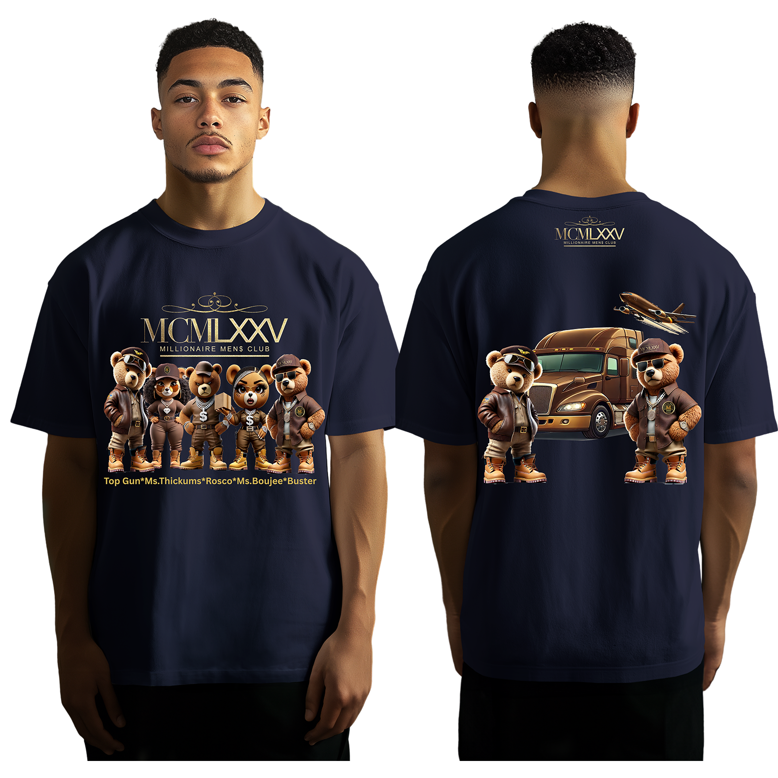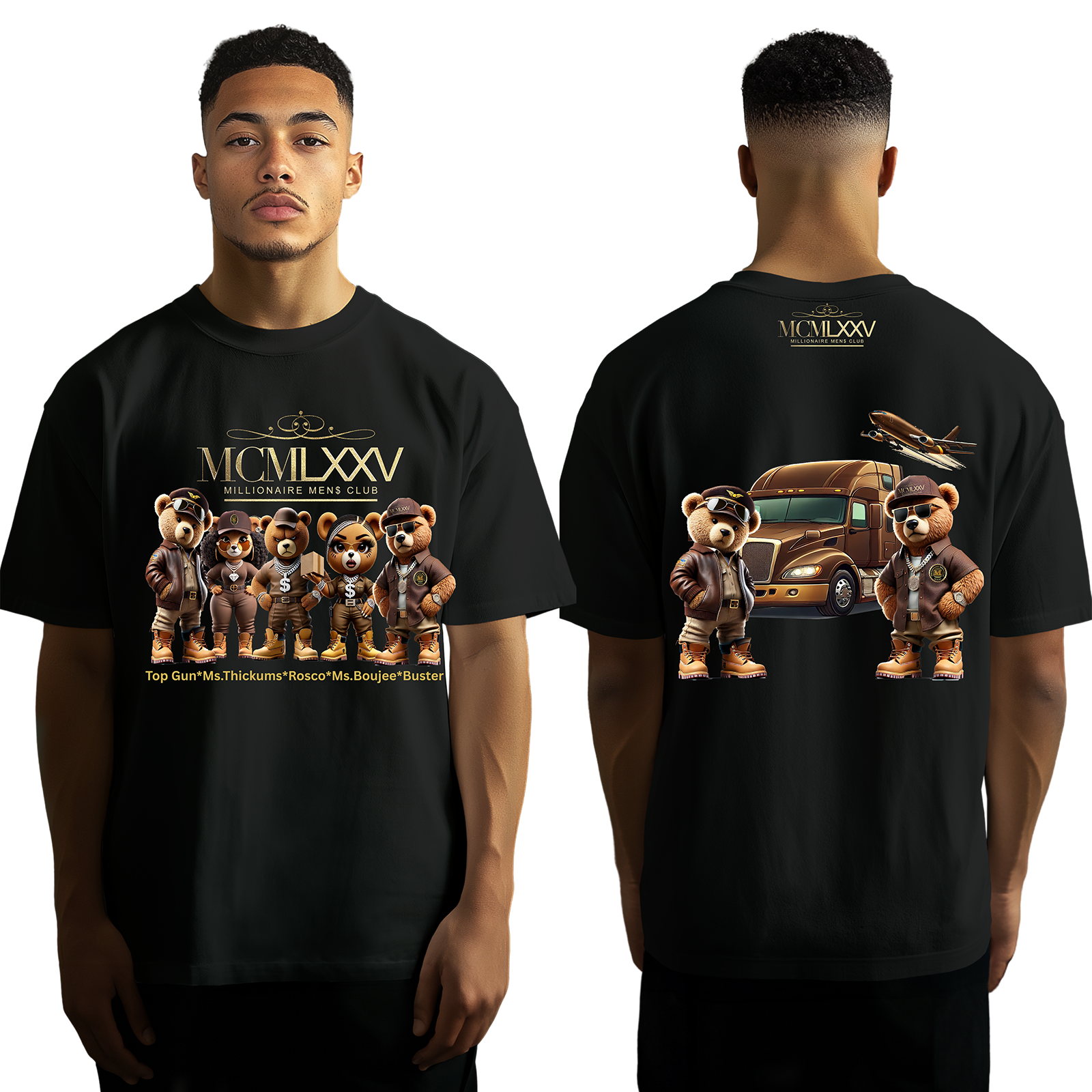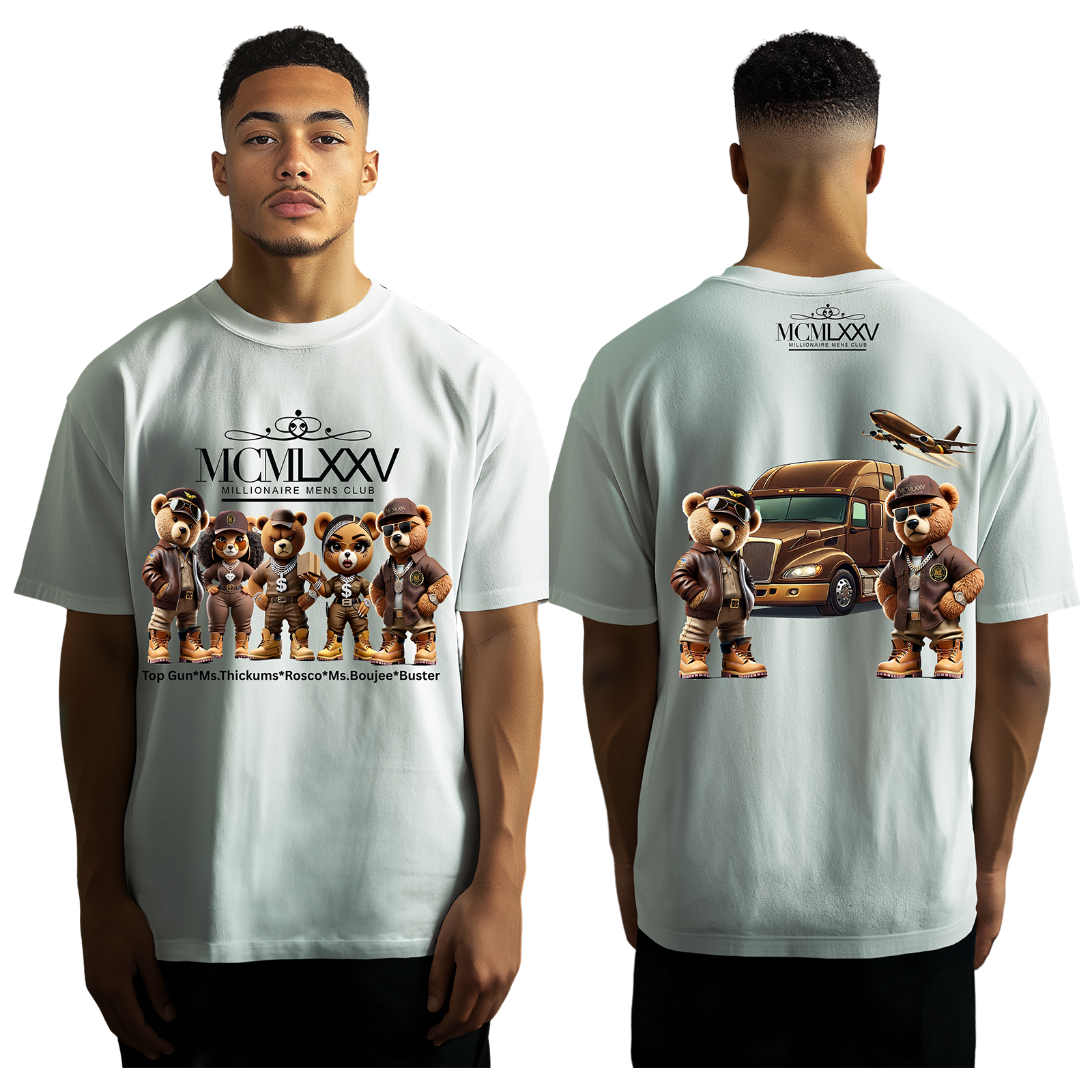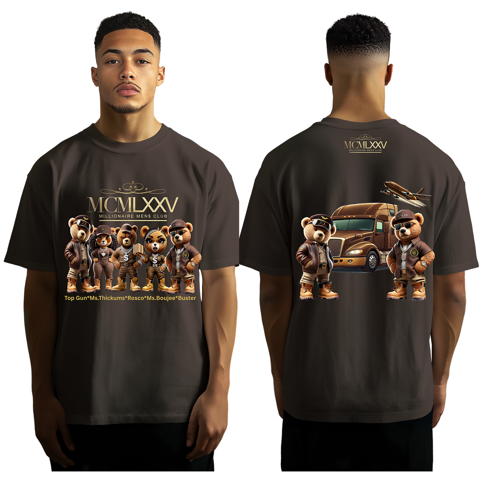 Introducing The Whole Gang T-Shirts - a must-have collection for fans of the beloved Brown Gang characters. This set includes all the fun, charm, and adventure of these unique characters. Plus, it showcases Top Gun and Buster on the back for added excitement!